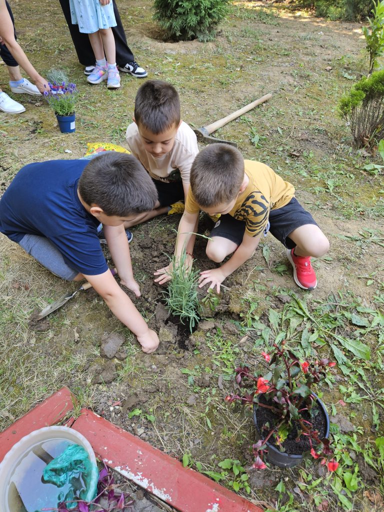 Најпре смо кренули од оплемењивања средине у којој боравимо, па смо у дворишту вртића направили нашу башту.