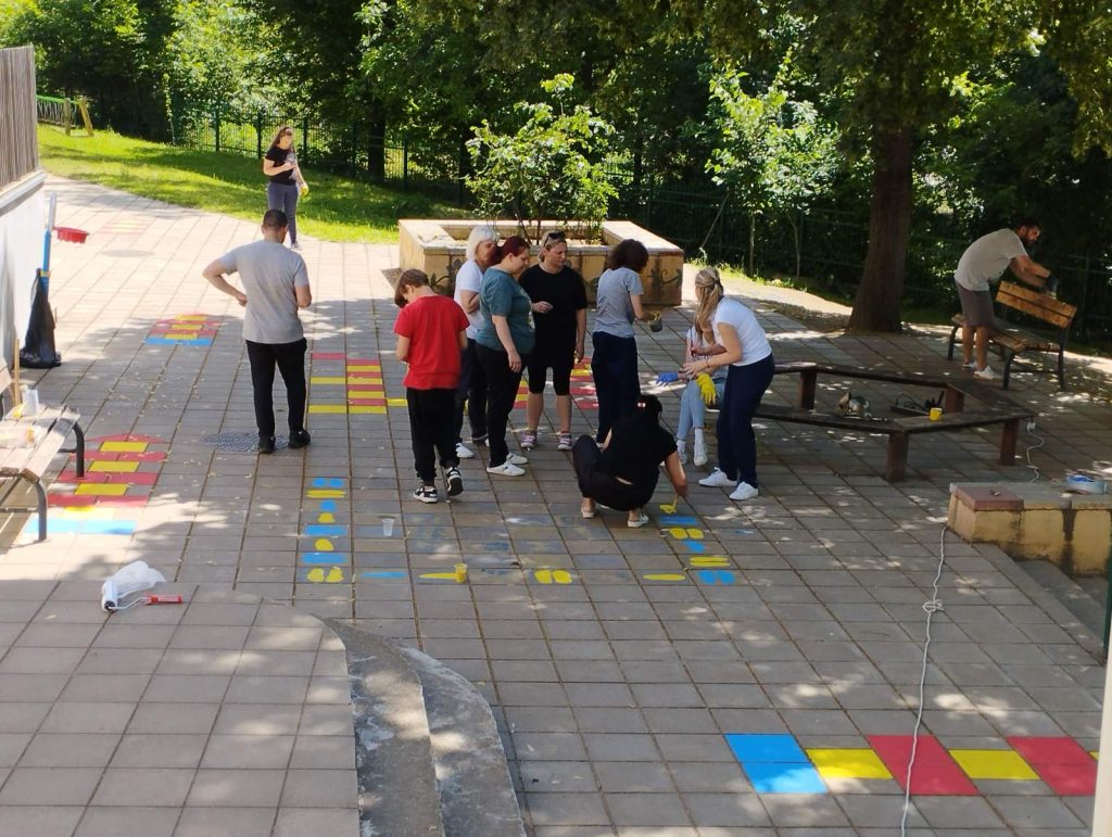 Заједно смо креирали бетонске делове дворишта (полигони, препреке..), уређивали зелене површине и поправљали постојећи мобилијар.