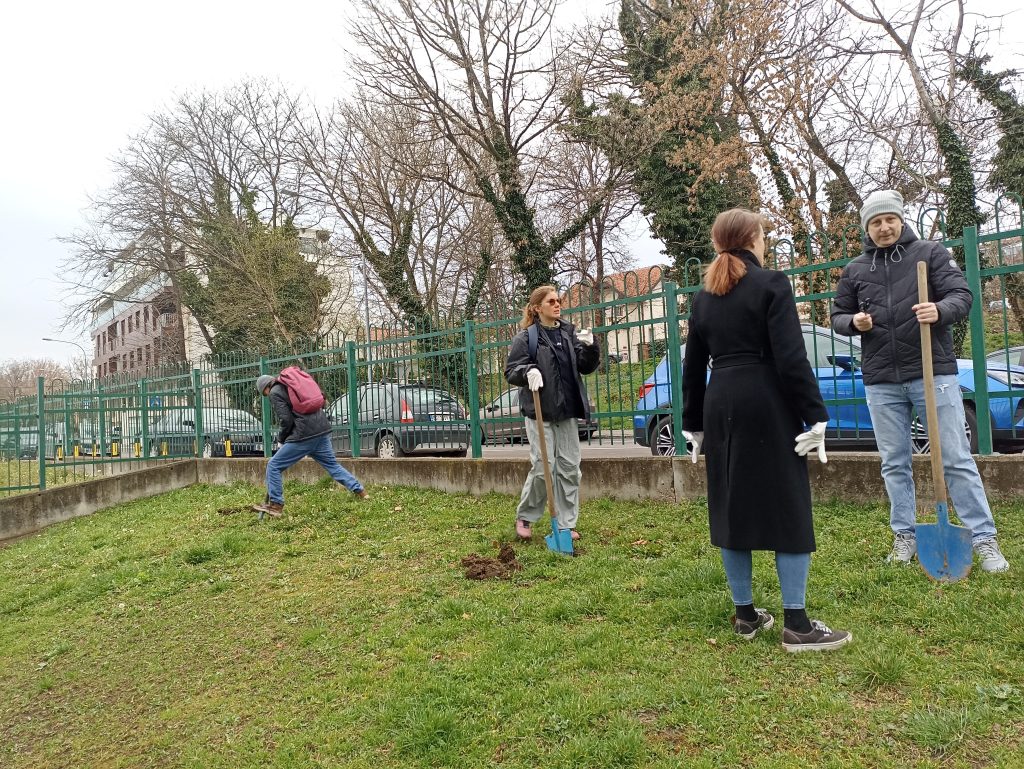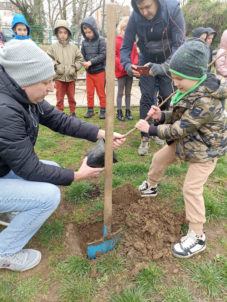 Волонтерска организација „Шума пева“ почетком марта, посећује наш вртић и поклања 12 стабала јапанског храста, које заједно са децом садимо.