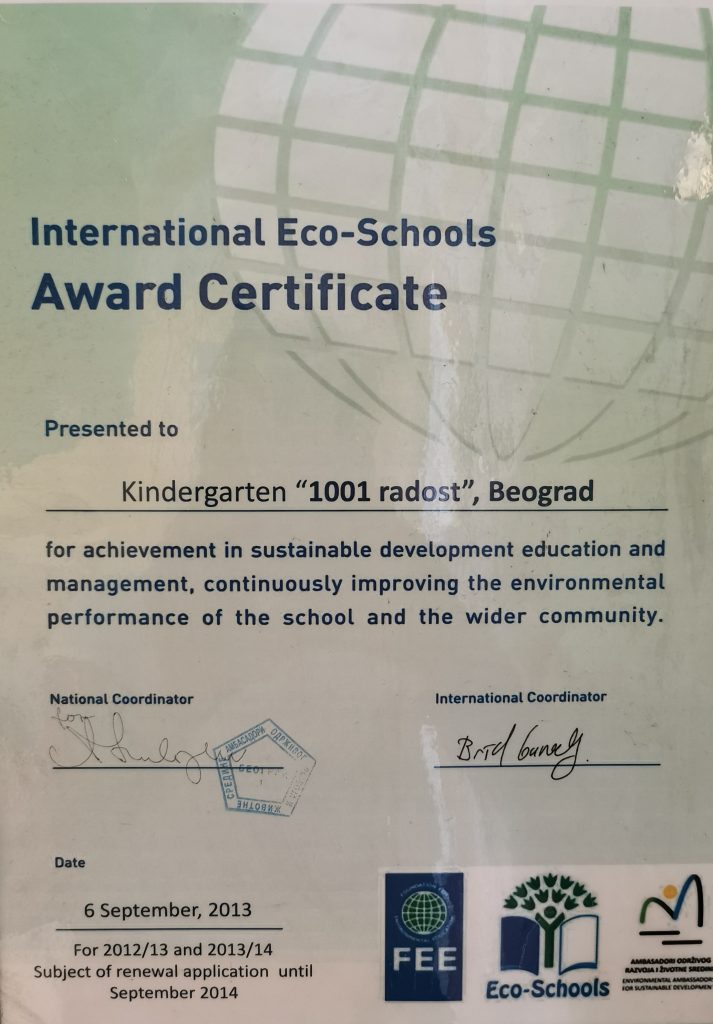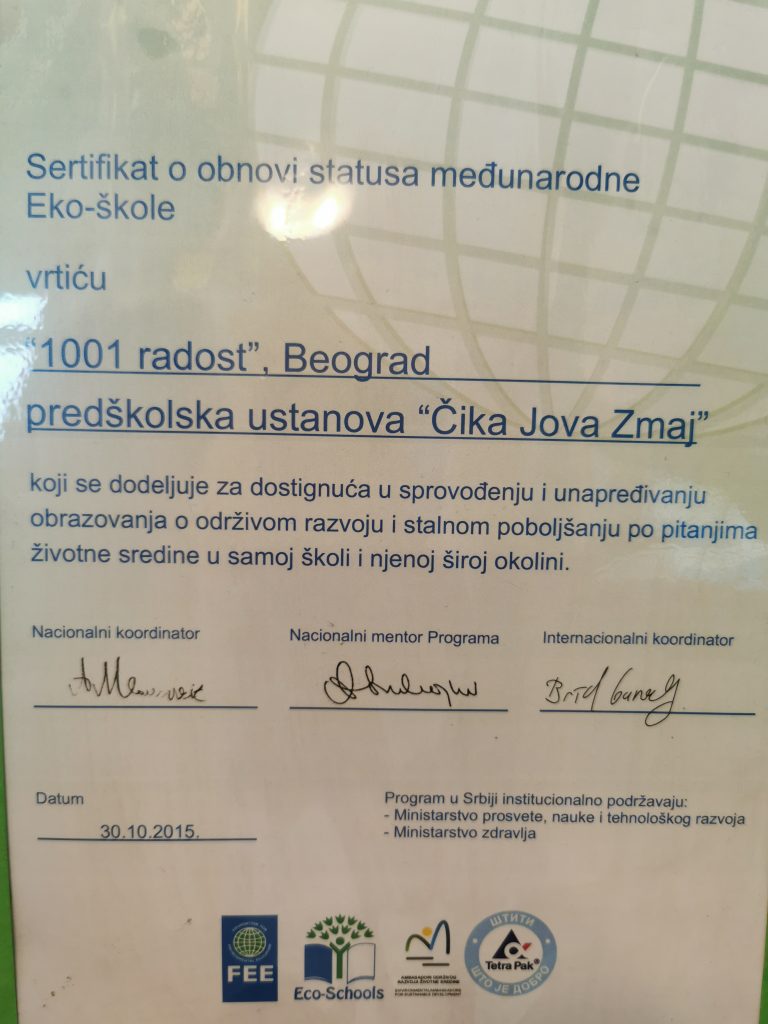 • Еко-школа вртић „1001 радост“