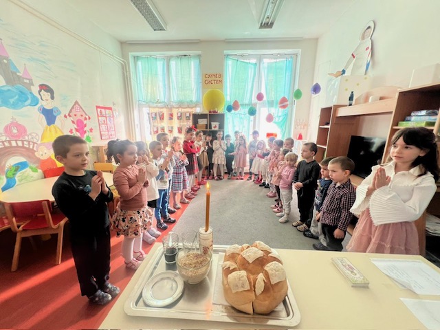 Празник Свети Сава прославили смо извођењем приредбе уз молитву и резање колача које је обавио свештеник цркве Свете Тројице. Након тога деца су извела приредбу у којој су рецитовала молитву Оче наш и певала следеће песме: